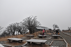 12月25日 一面灰色で展望が無く雲(霧)が流れて行く。天気予報では昼ごろから晴れる。計画では焼山登山口に降り16:38(午後一便のみ)のバスを予定で山小屋でゆっくりしていた所棚沢ノ頭から玄倉に降るご夫婦との話と山小屋の主人のアドバイスでFさんンも同意して玄倉に降る事に変更する(バスの便が多い)