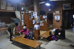 今年は暖かく全く雪は無く丹沢の主脈(蛭が岳、不動の峰等)の霧氷も見えず。残念だが代わりに天候が良く富士山はじめ遠くの山脈が良く見える。15:20。尊仏山荘に入ると昨年一緒に宴会をしたK、Iさんも来ていて早速夕食の準備に取り掛かる。