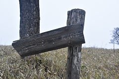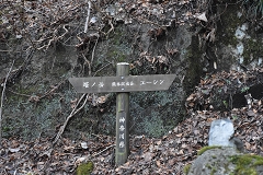 丹沢山からは早戸川乗越まで100m程降り丹沢山より高い不動の峰まで150mの登りとなる。不動の峰直下の休憩舎で昼食休憩(丹沢山と蛭が岳の間随一の休憩舎)不動の峰を越して棚沢の頭に登り朽ちかけた古い標識にユーシンの名が有る。時間の余裕も有り少し尾根筋の様子を見に入って見る。(まさか明日此の尾根筋を降るとは思いもよらず)12:20