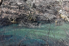 熊木沢出合から玄倉まで約12Km長い林道歩きが待っているが十分休憩も出来て体力も回復し玄倉林道を玄倉バス停を目指して緩やかに下って行く。此処からは何度か歩いた事のある所だが40年ほど前なので記憶が薄いが途中で寄り道したユーシンロッジや大石山に向かう鉄橋は面影が残っていた。跡で解った事だが最近「ユーシンブルー」と言う言葉があり人気のスポットになって居る様だ。