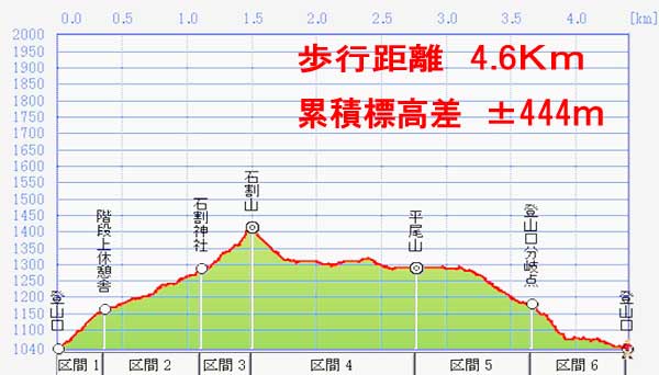 石割山登山口→石割神社→石割山→平尾山→石割山登山口