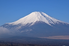 初登山は雪の有る所と色々調べたが日帰り圏内では見つからず、とりあえず山中湖に向かう。高速道路は渋滞が有りそうなので今回も道志道を行く。雪の全くない山伏トンネルを抜けると富士山が大きく正面に見えてくる。登山前に富士山のビューポイント、パノラマ台によって富士山を眺めてくる。