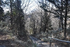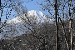 パノラマ台(明神山の中腹)も全く雪は無く白く雪化粧しているのは富士山と南アルプスだけで見渡せる山々は未だ緑の山となっている。素晴らしい富士山も写真に収めたので後は気楽に石割山に向かう。しかし登山口から403段の石段には体力が半減して何度か休憩をする。途中から旧登山道の薄い踏み跡を登ったが笹薮に遮られて逆に体力を消耗する。