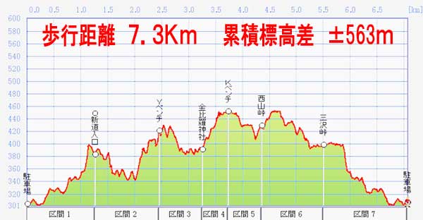 駐車場→南巻路→KAベンチ→西山峠→三沢峠→駐車場