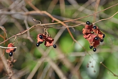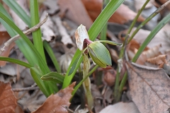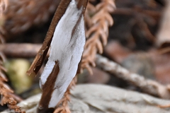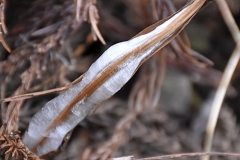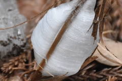 帰りは気温が低いので霜の華を探しに寄り道して見たが気が付かず引き返そうと足下を見たら小さな霜の華が数個、枯葉の陰に出来ていた。早速カメラの収めてから尾根筋の道を利用して帰る。