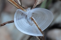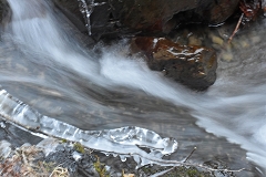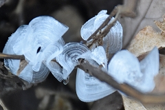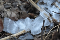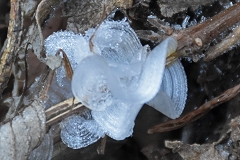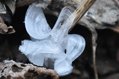 昼食中に写真を撮りに来たご夫婦としばし話をし立ち去ったとは何種類かの鳥さんとしばし昼食休憩となる。昼食後は30分ほど奥に行ったが日影の沢筋は薄暗く寒いので引き返す事にする。今回の予想外は霜の華が見れた事でした。