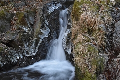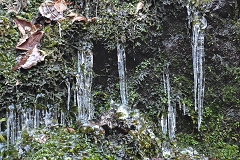 陽気も良く時間も空いたので今年は未だ歩いていない小下沢に向かう。何か一輪ぐらい花も見られるだろうと期待して行ったが太陽の位置が低く正午でも谷底まで陽が届かないため滝が氷柱になっていたり霜の華も見られる。