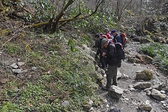 天気は曇りで時折薄日が射すが気温も低いのでアズマイチゲなど花は閉じたままだが各種エンゴサクも咲き始め、キバナノアマナも丁度咲き始めていて見る事が出来た。本日も日影沢キャンプ場に着いたのが13時近くになってしまったがアルコール類、大きな鍋の甘酒も用意されて楽しい花見後の昼食会となる。帰りはバス組と歩き組と分かれて帰る途中でKさんら3名と同行しながら高尾駅の戻る。