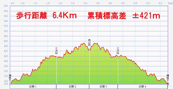 駐車場→三沢峠→西山峠→三沢峠→駐車場