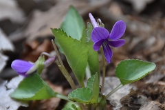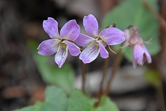 三沢峠で帰る方々を見送ってから各所でスミレの花を探しながら西山峠まで行く。目的のスミレも十分見る事が出来たので此処で引き返す事にする。一時黒い雲が張り出して来て雨が降るのかと思ったが下山時には明るくなって陽が射してくる。