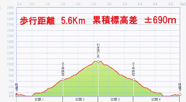 林道P→細久保入口→61号鉄塔→引き返す1050m→61号鉄塔→林道P