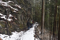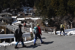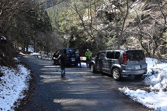 丁度2年前に訪れた幻の花園(福寿草の群生地)今回も道の駅芦ヶ久保で合流して総勢6名で登山口の細久保に向かう。今回は平日なので大日堂前の駐車場が利用できると思っていたが既に満車で前回と同様で少し先の道路際に駐車。昨日もかなり降雪が有り山肌は真っ白で道路は除雪車が出て雪は無いが路肩に雪の塊が続いている。