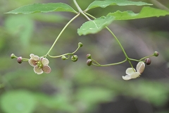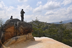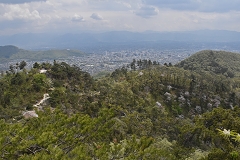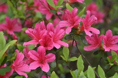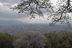 今日は甲府駅から山花友の案内で里山花めぐりをして来る。天候にも恵まれて新緑の自然林の中で各所に咲く花を見ながらユルユル、ノロノロと歩き回り目的の八王子神社の手前で昼食タイムになってしまう。此処には展望も良い休憩舎が有り萌木色の山肌に桜色の斑模様が柔らかく見に移る。眼下の甲府市街の後方には御坂山塊から天使山塊に続く山並みの上に富士山が見えるのだが本日は春霞で見えず。