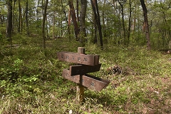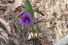 此処、武田の杜も自然林の中、遊歩道が続いていて新緑の中の山桜等や足元のスミレ類も見られ眼下には甲府盆地の中央を流れる荒川と笛吹川の筋が見渡せる。サービスセンターに戻った所で迎えのタクシーで緑が丘運動公園に戻る。今回の機会を作って案内して頂いたAさんに同行のSさん共に感謝。
