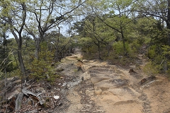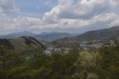 昼食後、岩肌の斜面に作られた岩の階段を登り詰めて八王子神社の山頂に出る。山頂からの北斜面には各所で丁度満開となったカイイワカガミが咲いていて早速カメラに収める。予想以上に多く咲いている。花の時期は未だ先だが巻路の斜面にはミヤマウズラも多く見られ再訪したいと思いながら通過する。千代田湖畔の一角に降り武田の杜まで足を延ばしサービスセンターで情報収集と帰りのタクシーの手配を済ませて展望広場に向かう。