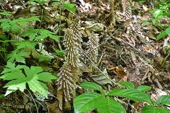高尾駅から小仏峠行バスで日影で降りる。3台のバスも満員で日影では3割ほどの方が降りてほぼ全員日影沢に向かう。今日は日影沢を通過して小下沢に向かう。今回は景信山方面まで行く予定なので未踏の尾根も含み最短距離の尾根を登り景信山〜堂所山との間の稜線に登る。