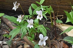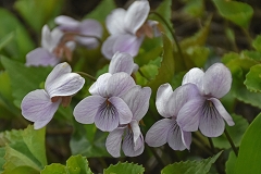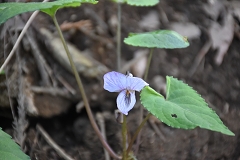 スミレ類の花を見ながら堂所山付近まで行き引き返し途中で軽く昼食にする。景信山は巻路で通過して小仏峠から小仏城山へ巻路を通って登り此処で休憩をする。一丁平から逆沢作業道を下り日影バス停から18:43発のバスに乗って帰る。途中から同行したKさん逆沢林道でお逢いした林野庁の方2名、小仏峠上でS,Eさん小仏城山Tさん帰りの日影林道ではNさんグループと一緒に帰る事になり多くの方にお逢いしたハードな山歩きとなる。