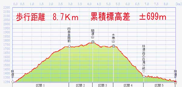 三つ峠登山口林道→開運山→木無山→林道(母の白滝分岐)→三つ峠登山口林道