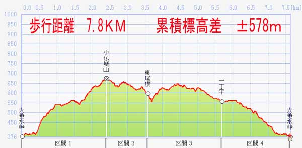 大垂水峠→小仏城山→一丁平→富士見台→高尾山→金毘羅台→高尾駅