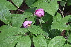 高尾駅で花友3名と合流して大垂水峠から各所に咲く花を見ながら周回してくる。今日の一番の目的はベニバナヤマシャクを見る事で効率よく回れる大垂水から入山する。エビネ類は終盤だが来年の事もあり確認しながら登って行く。早速目的地に行き緑の中に薄紅色のベニバナヤマシャクヤクが一際目立って見える。早速カメラに収めてから次の目的地に向かう途中でUさんと行き交い後方からはIさんとKさん達が来てしばし花談義となる。