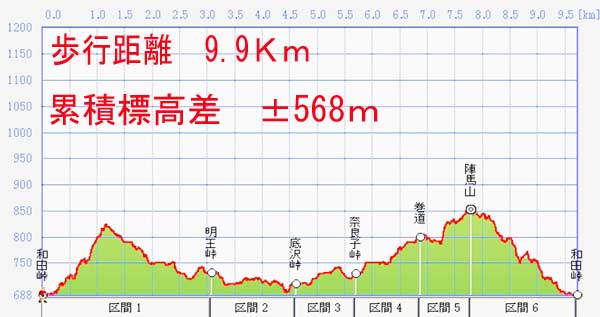 和田峠→巻路→陣馬山→明王峠→底沢峠まで往復