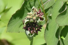 3か所のベニバナヤマシャクヤクを見る予定でいたが1か所は今年は見られず残念だがエビネやクモキリソウ等新たに数か所で確認できる。また昨年は花が見られなかったフナバラソウは今年は花が咲き始めているのが見られる。信玄茶屋さんによって軽く昼食を摂り午前中に下山する。
