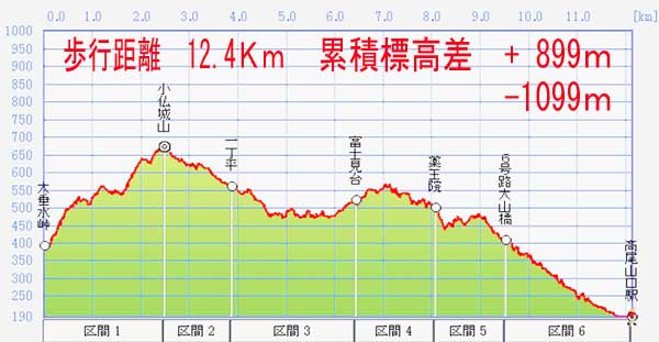 大垂水峠→小仏城山→一丁平→富士見台→高尾山→高尾山口駅