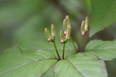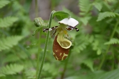 花の咲く時期に合わせて行く計画を以前から立てていた所、行くチャンスが出来て以前より1時間ほど早く出発したが運悪く事故渋滞で結局、登山口に着いたのは前回とほぼ同じ時間になってしまったが丁度良い所に駐車できる。早速準備をして周りを良く監察しながら超スローペースで山頂を目指す。前回見られなかったチョウセンゴミシやトリガタハンショウズル、ノビネチドリ、アツモリソウ、クマイチゴ等見られる。