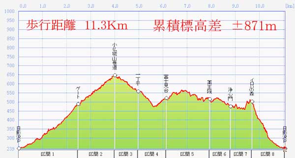 日影沢→小仏城山巻道→一丁平→富士見台→薬王院→浄心門→いろはの森→日影沢