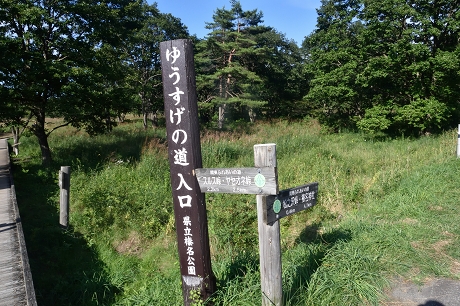 山頂からは北側(榛名温泉)方向に降る。途中で少し荒れた所もあるが30分ほどで湖畔に辿り着く。湖畔の遊歩道を利用してビジターセンター前に戻る。もう一峰登る予定でいたが明日の事もあるので2峰の登山は止めて代わりにユウスゲの道に向かう。