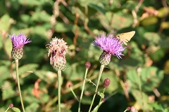 多くの花に誘われてスルス(磨墨)峠まで足を延ばす。此の峠は相馬山に続く登山道で休憩舎が有る。此処から少し山道を下りユウスゲの道に合流して再び周りに咲く花を見ながら戻る。(往路は草原の中央の道で復路は東側の林との境の道)