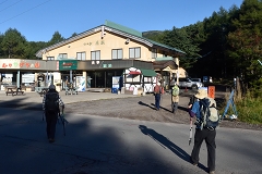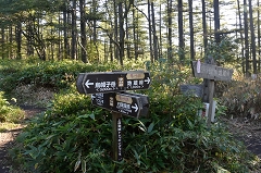 今回の山登りで一番標高の高い湯の丸山2101mに到着、ドーム型の大きな山頂で健脚の二人は既に湯の丸山北嶺を往復して戻っている。此処も素晴らしい展望が有り籠の塔山の後方に噴煙を上げている浅間山が見える。左手には昨日登った角間山、鍋蓋山の後方には四阿山や志賀高原の山脈が望める。湯の丸山は以前登った事が有り記憶を辿りながら鐘分岐、牛ゲートを通って地蔵峠に降る。