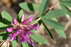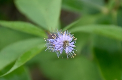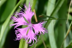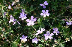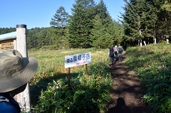 カラマツ林の中の十字路を通過して湯の丸山の南側の山腹を緩やかに巻きながら烏帽子岳との鞍部(コル)まで笹原に交じって多くの花を見ながら快適に歩き湯の丸山と烏帽子岳のコルで小休止。