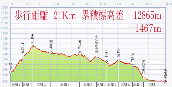 藤野駅⇒和田→陣馬山→明王峠→景信山→小仏城山→一丁平→高尾山→高尾駅