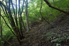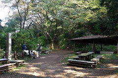 今回で5回目と恒例になった藤野駅から高尾駅まで体力テストを兼ねた山歩き。例年より一月早い実施となったが山は涼風があり爽やかな緑の中を歩ける。例年の11月だと紅葉も見られるが。以前は藤野駅から歩いて各所の登山口から登っていたが今回は和田までバスを利用して1番口から登り始める。一ノ尾根に合流する手前の作業道(水平道)を少し探索しながら歩き途中の尾根筋から一ノ尾根に登り。2番口からの登山道の合流点を通過して山頂直下の急斜面階段を登り陣馬山山頂に出る。