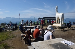 信玄茶屋で名物のケンチン汁を頂き、周辺に咲く花を見て回り早々に高尾へ向かう。秋晴れの日曜日とあって行き交う人が絶えることなく続く。明王峠でビールを飲みながら昼食にしてから底沢峠、堂所山を巻路で通過して景信山に登る。此処も多くの登山者が来ている。
