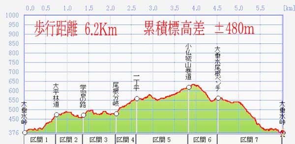 大垂水峠⇒大平林道→学習の路→一丁平→小仏城山巻道→大垂水尾根→大垂水峠