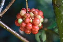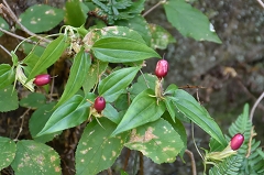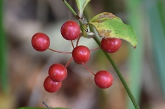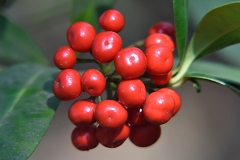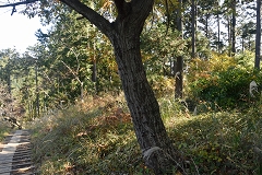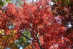 駐車場が満車でケーブルカー利用しての紅葉狩りは諦めて大垂水峠から奥高尾へ変更。大垂水からのコースは高尾山周辺の混雑とは無縁で全く人影はなし。何時もは足下に咲く花を探し求めて歩いて行くが本日は時々空を見上げて緑の樹林の中の紅葉と黄葉を探しながら登って行く。ミヤマフユイチゴ、ツルリンドウ、ミヤマシキミなどの赤色の実が陽に輝いて目立つ。