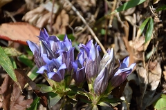 先週も来た学習の路入口のセンブリは既に終わりなのか開いている株は無し、代わりに近くでリンドウとモミジノ素晴らしい紅葉が見られる。学習の路の途中から未踏の尾根筋を登り一丁平へ行き此処で紅葉を見ながら昼食。さすが此処はメインルートで多くの人が行き交っている。食後は小仏城山巻路から大垂水峠に降る。