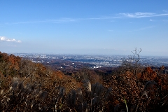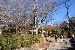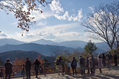 山頂からの展望、富士山は左半分が雲に隠れていて少し霞んで見える。高尾山頂を越えて紅葉台に登って見る。山頂の店は営業していて10名ほどが遅い昼食を摂っている。富士見台に降る所の日当たりの良い所で軽く昼食休憩にする。後、富士見台に降り紅葉台南巻路を戻る。