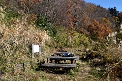 12時を過ぎてしまったので少し先のボランティアの森に降り陽当たりの良いテーブルベンチで一人貸切で昼食にする。昨年は丁度今頃此処でバーベキューをした所で今年は又出来るか?。