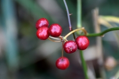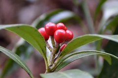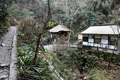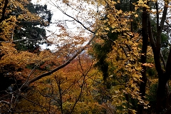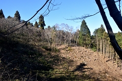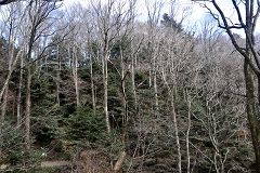 前回は13時発のケーブルで今回は11:30発のケーブルに乗車で来て時間的に余裕が有りのんびり歩いても小仏城山まで往復できる。今回のコースは霜の華を見るため北側の巻路を行く。完全に枯れ木となった樹木の間に名残の紅葉も見られる。
