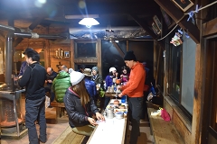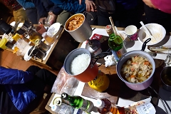 泊りの手続きを済ませて早速宴会準備、昨年消灯まで飲み語りをしたY崎さんも6名のグループで来ていて合同宴会となる。日本酒、焼酎、ワイン、ウィスキーにキムチ鍋、野菜鍋、炊立てご飯等々。更に〆のコーヒーで8時の消灯直前まで続く。