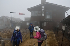 翌24日朝、昨日とは一転してガスと強風の山頂となる。予定では主脈を縦走して蛭が岳山荘に昨年と同様に泊まる事にしていたが予定を変更して鍋割山経由下山する事にする。塔ノ岳を降ると風も治まりガスも消えてきて富士山の姿が見も見えてくる。どうやら塔ノ岳から蛭が岳までの主脈の山頂付近がガスに覆われている様子だ。金冷やしで大倉尾根を下山するNさんを見送り、我々4名は鍋割山へ向かう。