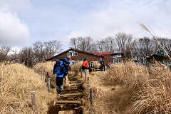 途中でTGA東京岳悠会の3名追い越され、追い付きを繰り返し花立山荘まで話しながら登る。重たそうなザックの中には宴会用の飲み物と食料が沢山入っているとの事で歩くペースが私と変わらず。渋沢駅から一緒のバスで来たTさん親子とFさんは何時も前方を歩いていて追い付く事は出来ず。