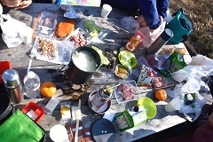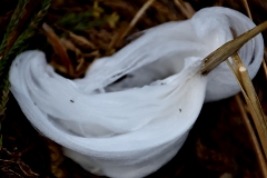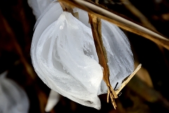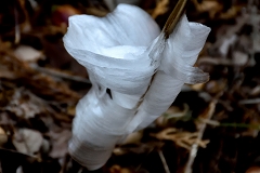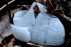 一丁平への階段でK木さんと行き交い情報を頂く。一丁平迄行き日当たりの良いテーブルベンチで昼食(新宴会)丁度通りかかったI黒さんも加わっての山宴で食後は各所の霜の花を見ながら小仏城山巻路まで同行させて頂き我々4名は小仏峠から下山する。K沢さんが足の不調でしたが何とか真無事に高尾駅に戻れる。
