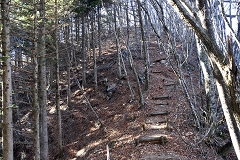 展望を楽しんだ後は吉田の名物うどんを食べてから旧御坂トンネル迄行き、此処でも富士山の展望を楽しみながら御坂山目指して登り始める。稜線までは急斜面の登りで食べ過ぎた影響か苦しく数回立ち止まりながらの登りとなる。