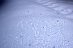急斜面の下りで 雪の欠片が転げる |