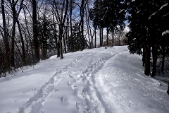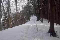堂所山の巻路を通過して明王峠までと思ったが本日は堂所山迄とする。景信山より10m程標高が高いので此処も積雪が30〜40センチあり。新しく出来た標識とベンチが有り此処でしばし雪見コーヒー。山頂からは関場峠方面居も既にトレースがあり関場峠から長い小下沢林道を歩くルートも楽しめそうだ。