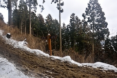 巻路で倒木に阻まれる |